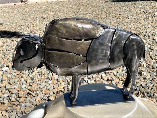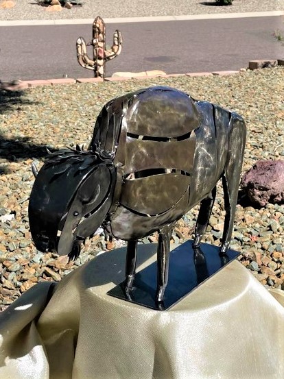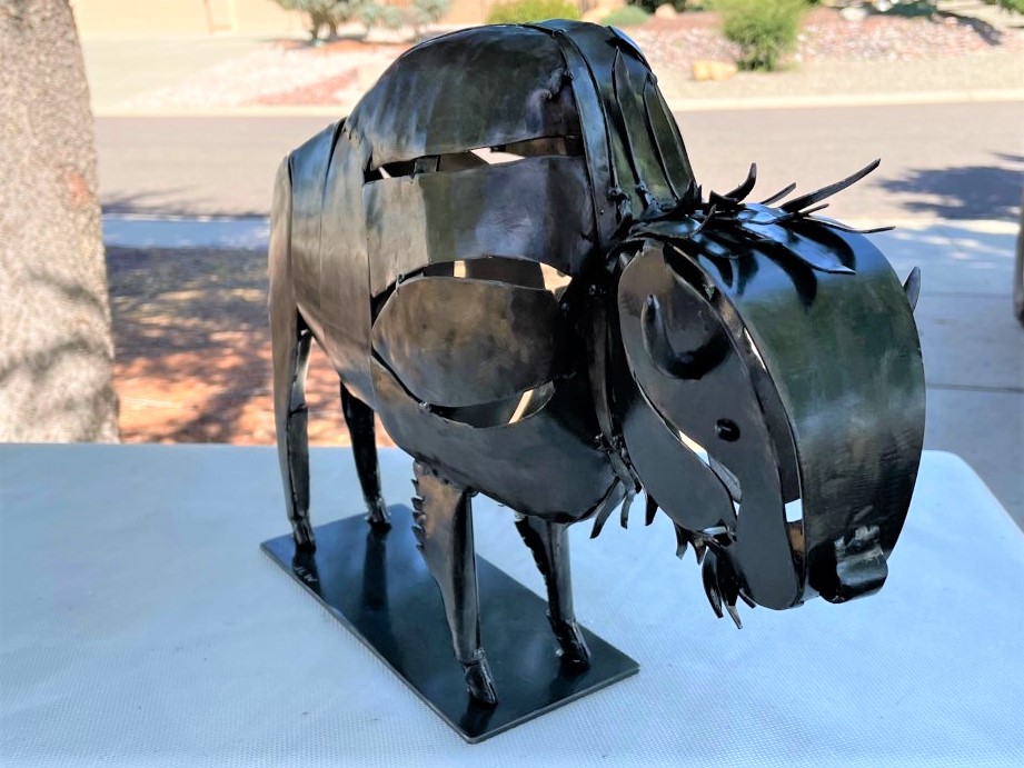 All steel, American Bull Buffalo sculpture with solid 1/8″ steel base.