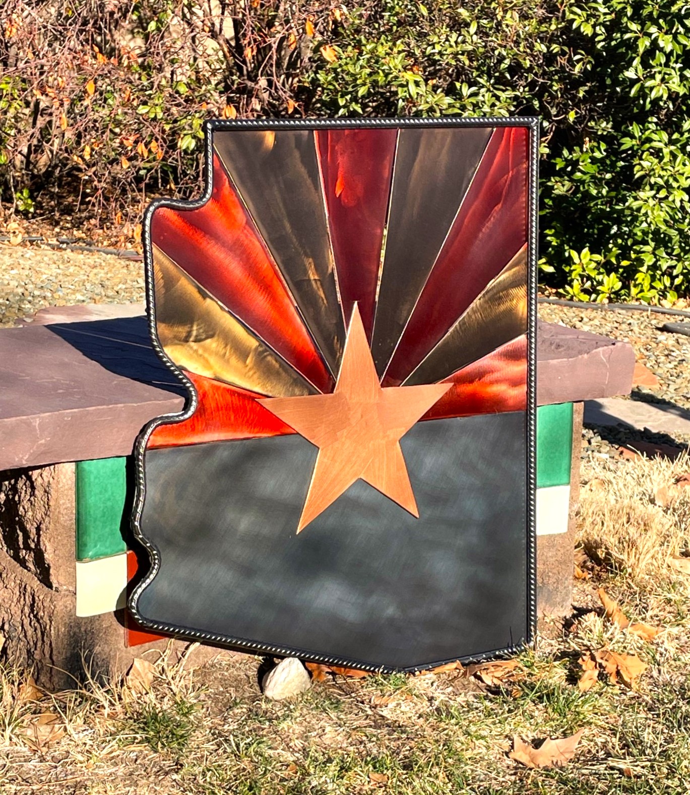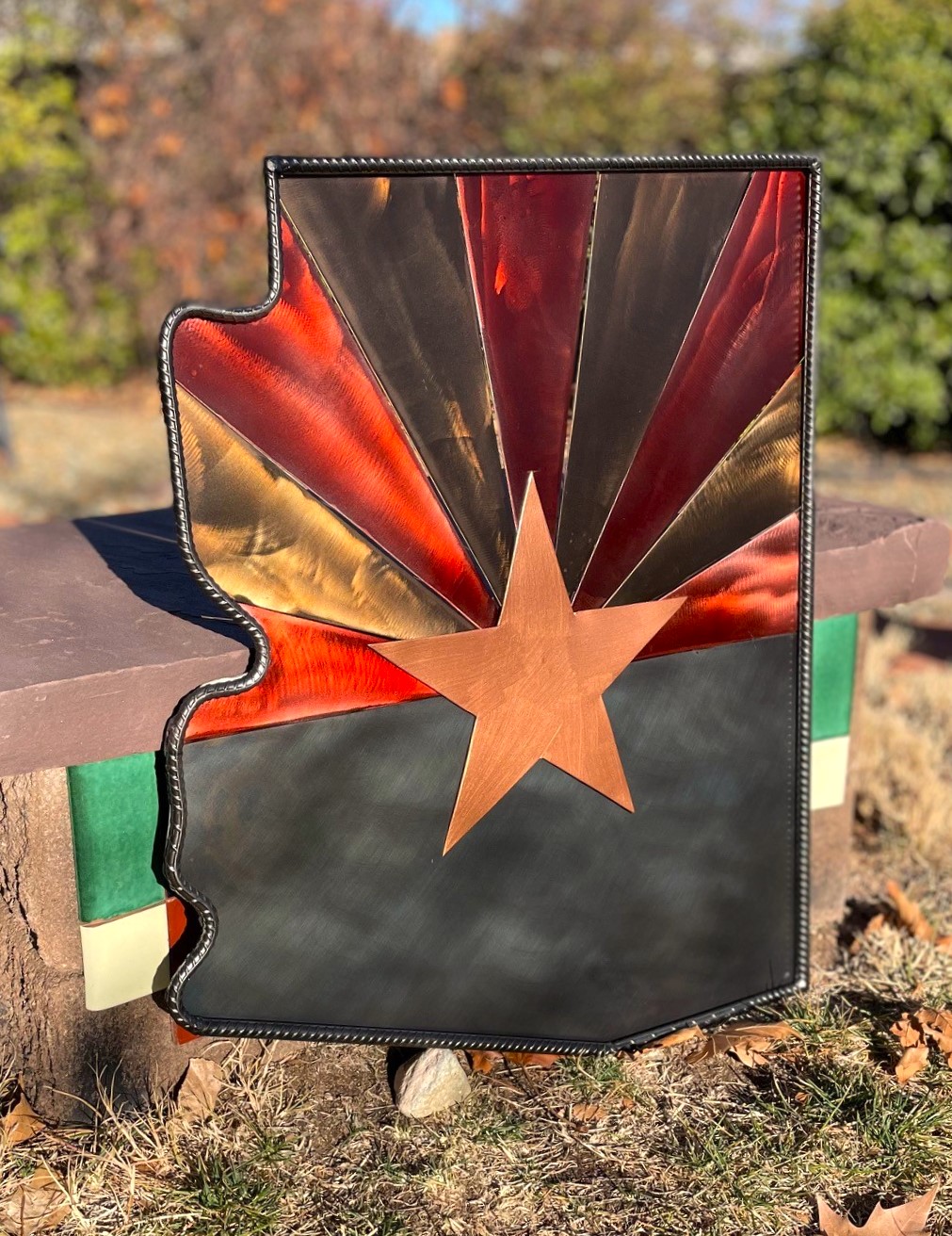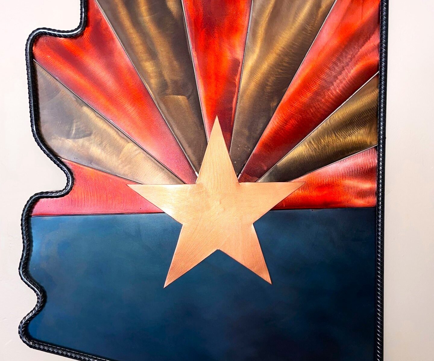 All steel, 3D effect, welded Arizona state flag sign.
