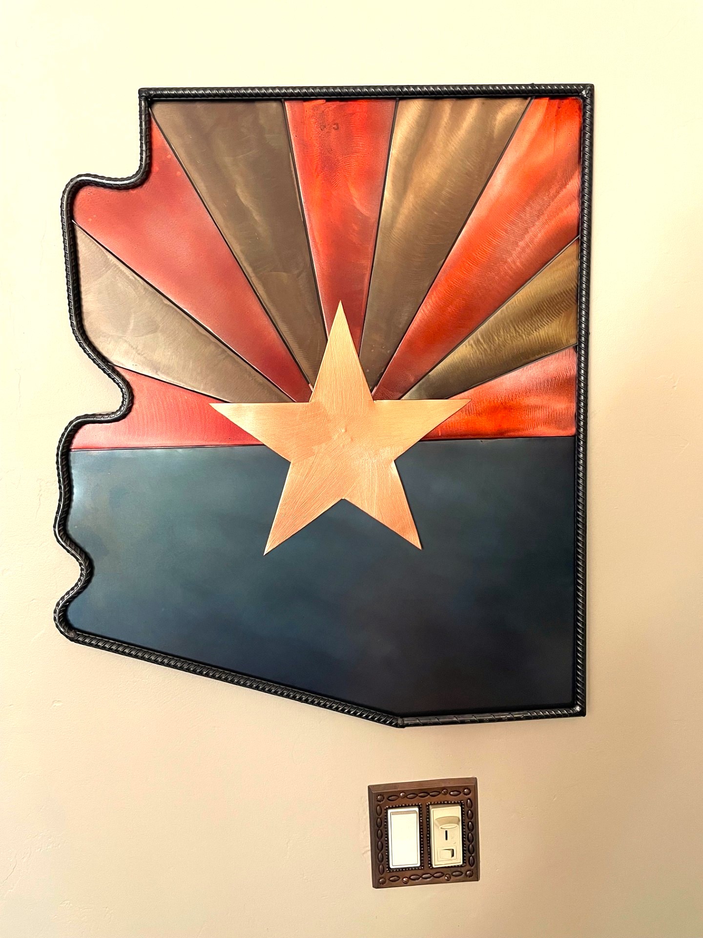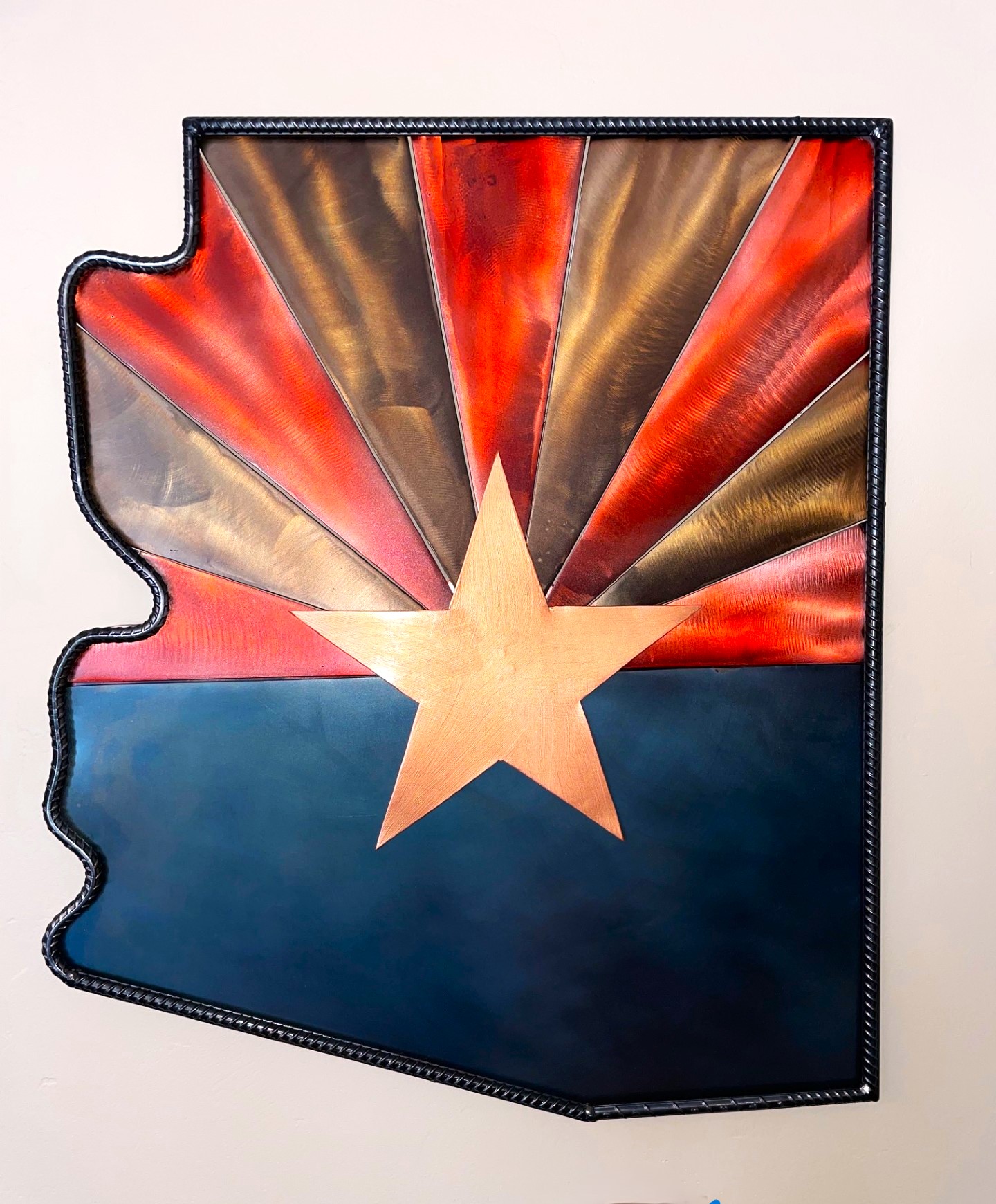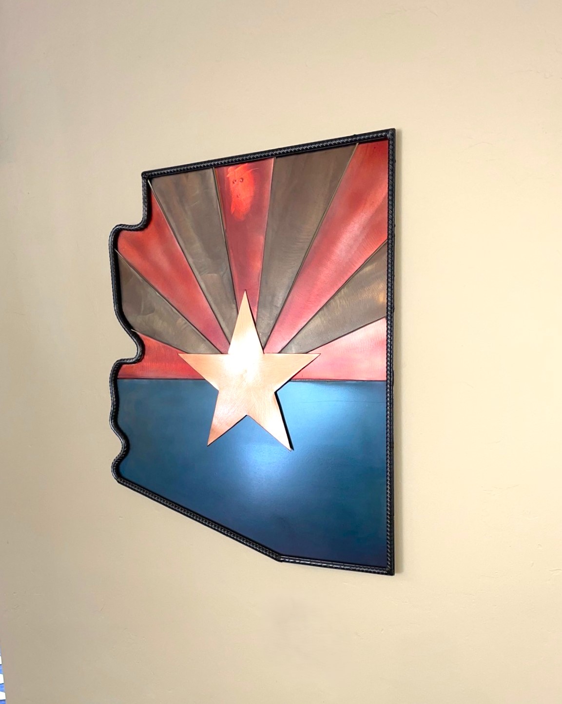 All steel, 3D effect, welded Arizona state flag sign.