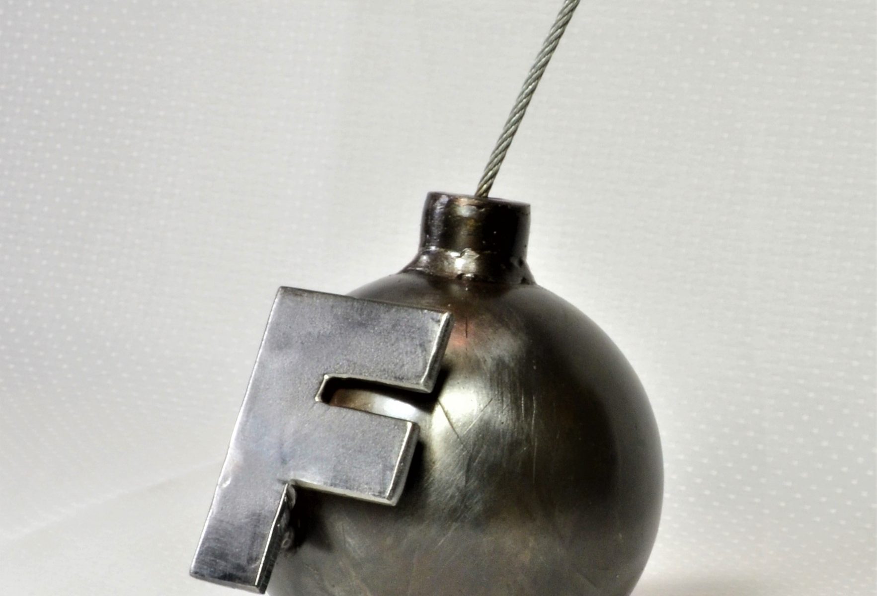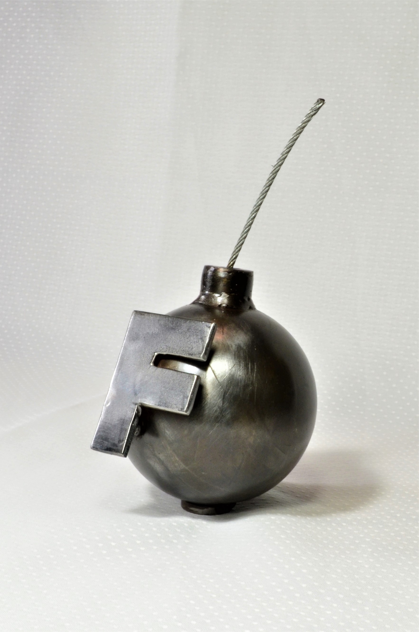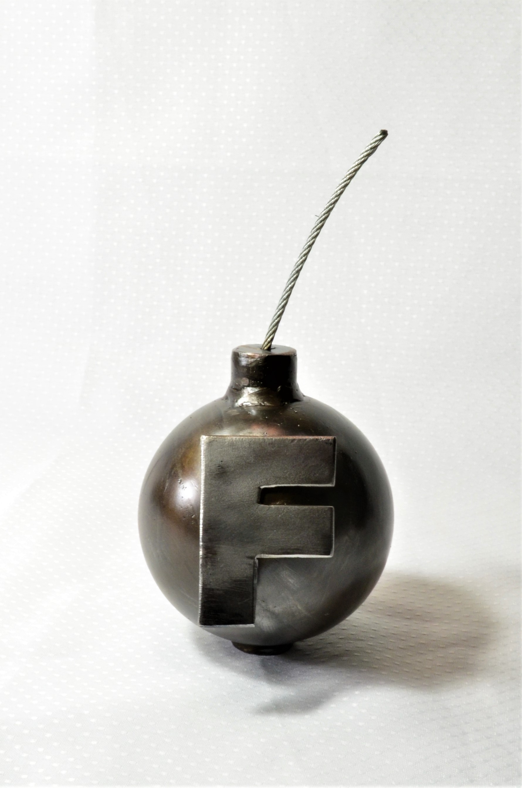 All steel, welded, F-Bomb paperweight novelty.