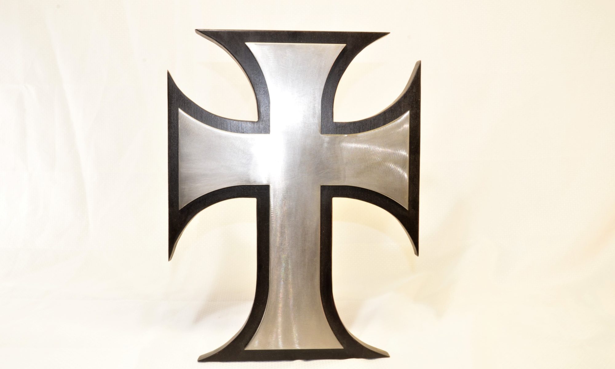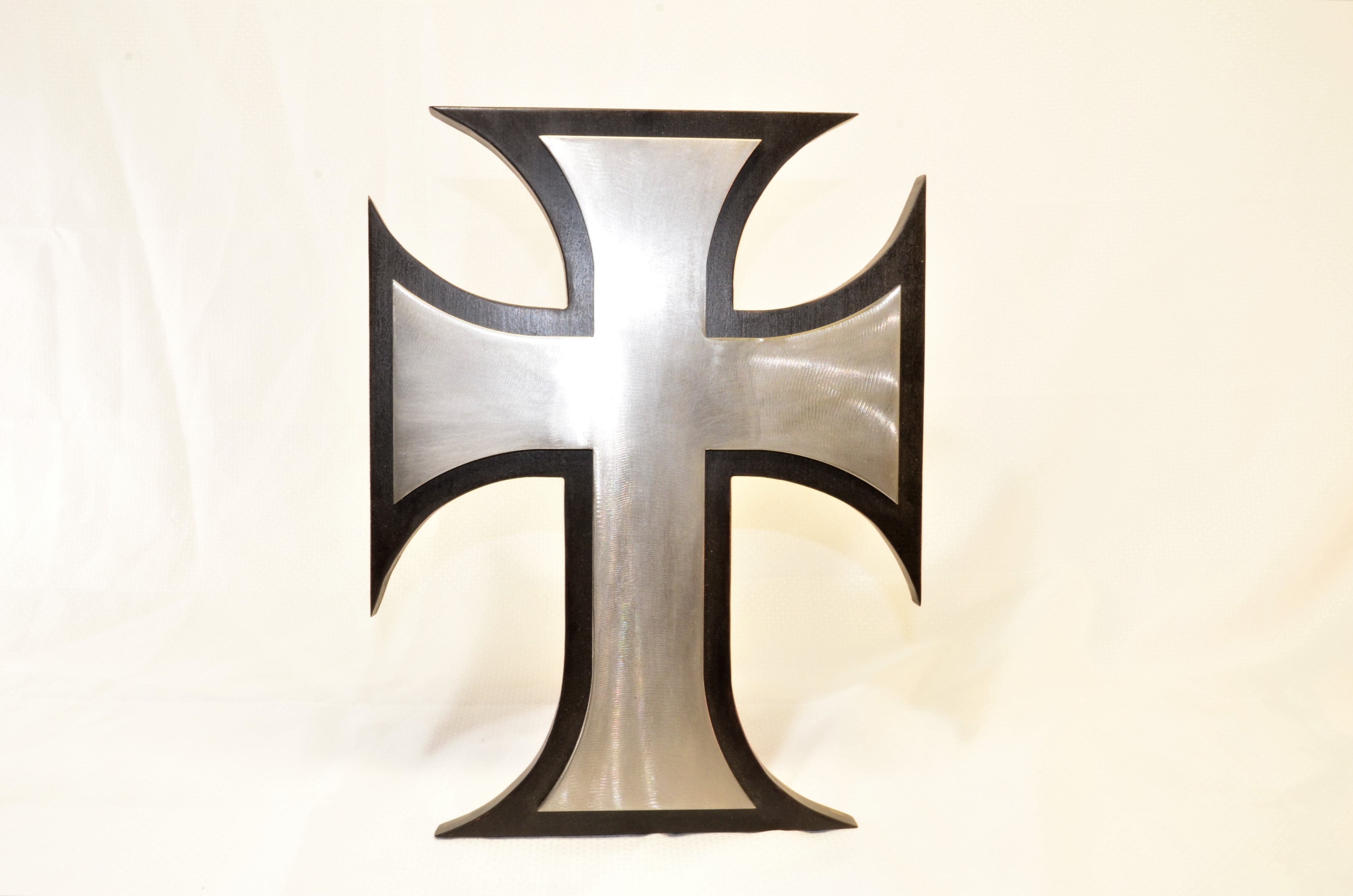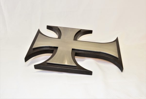 Gorgeous Maltese Cross – 3/16″ steel mounted on stained maple wood.Â