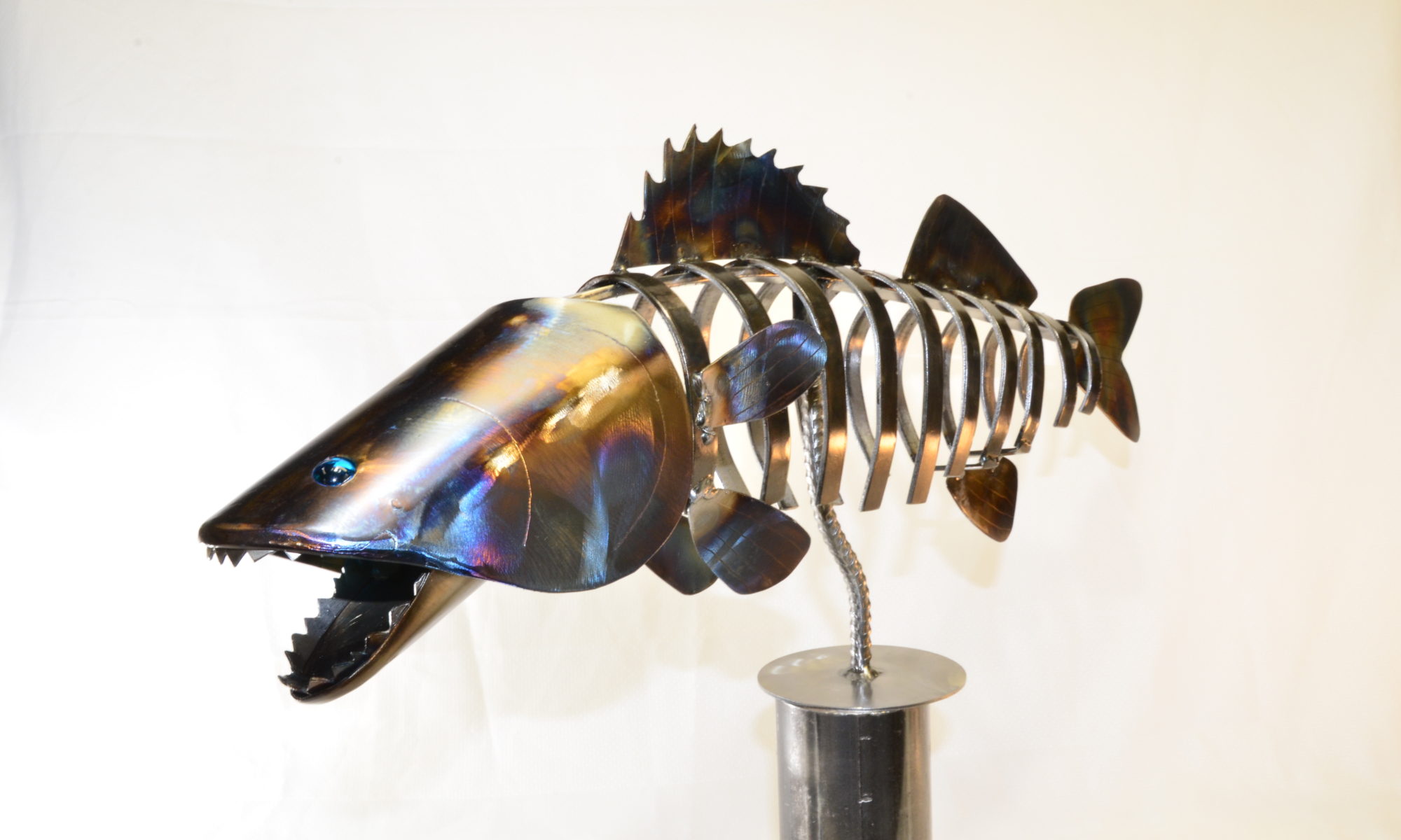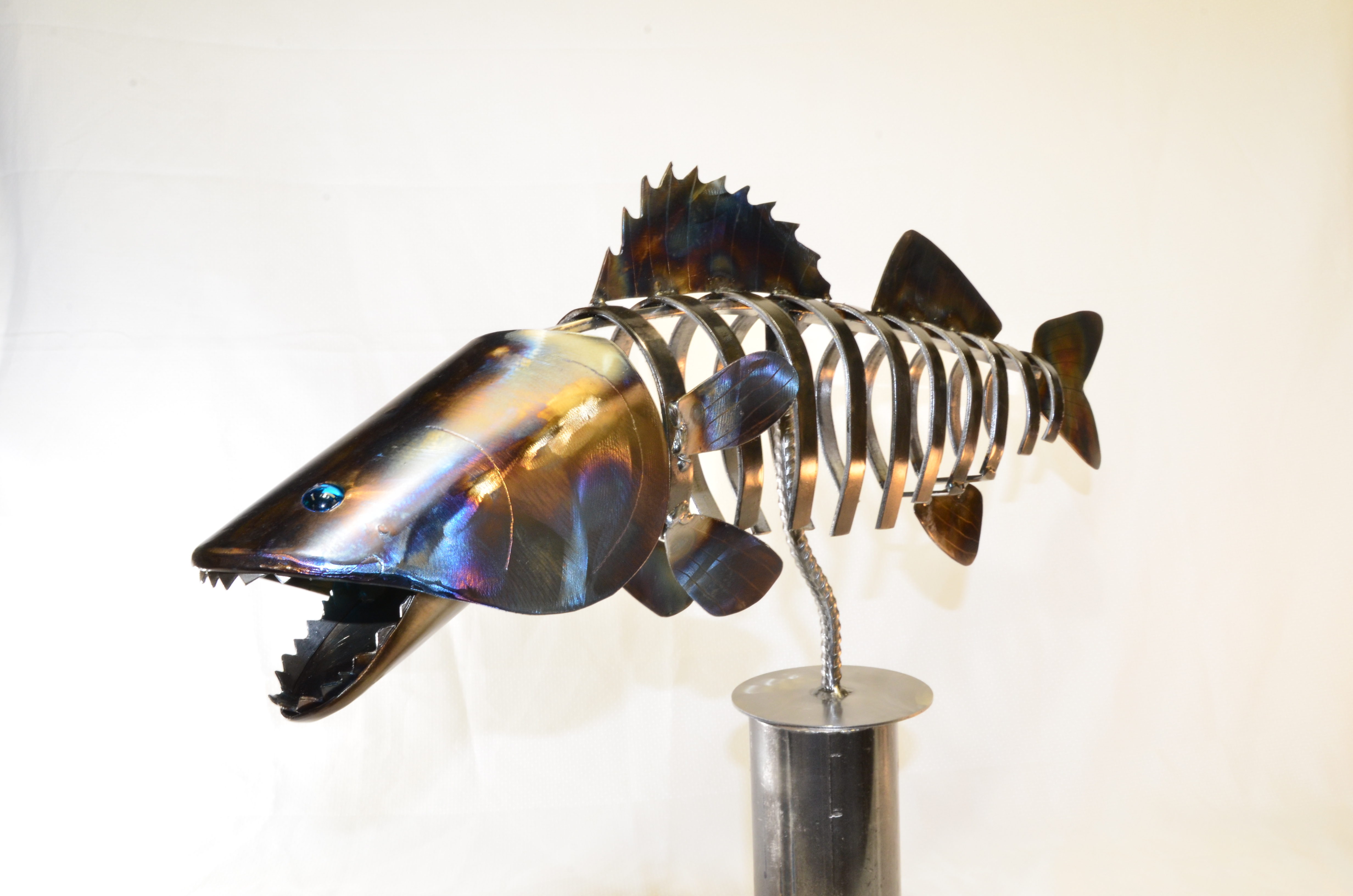 Each fish comes with a small 6” display stand and a 2’ metal pole for displaying outdoors. Each stand screws into the center of the fish and can be removed easily.